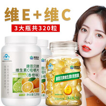 [3瓶套装320粒]康恩贝维生素C咀嚼片香橙味2瓶+维生素E*1瓶补充维生素C和E VCVE