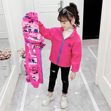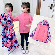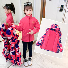 小咕嘟熊童装女童冲锋衣棉衣外套2020新款洋气可拆卸摇粒绒内胆三合一春秋款休闲儿童户外上衣女童外套 紫色 120