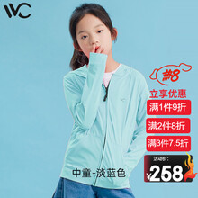 VVC儿童防晒衣夏季防晒外套防紫外线透气子连帽防晒服 淡蓝色(7至14周岁) 均码