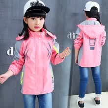 童装 女童冲锋衣外套春秋新款小孩衣服洋气中大童秋装上衣韩版冲锋衣 粉色 110码建议身高100cm左右