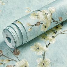 复古美式乡村壁纸墙纸立体绿色无纺布田园花卧室客厅电视背景 花纹款:8804-6 墨绿色