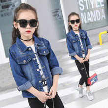童装 春秋款女童牛仔外套中大童韩版新款长袖上衣 儿童休闲外套 深蓝色 120cm