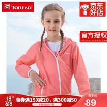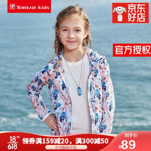 探路者童装皮肤衣春夏新款户外防晒upf40透气轻薄儿童连帽防晒女童风衣外套QAEG84011 花卉白色印花 130