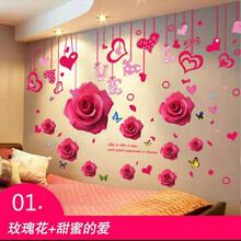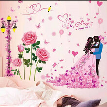 曦凰 婚房间卧室浪漫墙贴纸贴画温馨宿舍墙壁装饰品结婚情侣墙纸自粘 1.粉色玫瑰+路灯下婚礼组合 特大