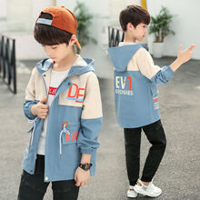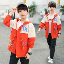 童装 儿童外套春秋款男童秋装新款韩版中大童中长款男孩连帽拼色风衣洋气潮 黑色 120码建议身高120厘米左右