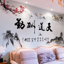墙纸自粘桌面墙上装饰贴画外墙贴纸山水风景自粘墙纸贴纸客厅书房沙发电视背景墙贴画中式 02.天道酬勤字画 特大