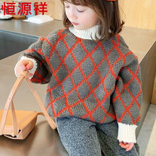 恒源祥小女孩穿的羊毛衫儿童毛衣半高领加厚新款女童外套冬3岁9岁中性针织洋气套头打底衫 灰色 90身高90厘米