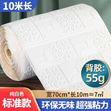 ktm墙纸自粘卧室温馨吊顶天花板泡沫3d立体墙贴纸防水防潮背景墙装饰 纯白色【特价款】70cm*5米 升级粘性 大