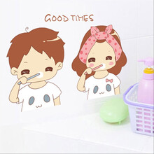 吉朵芸 情侣墙贴自粘卧室温馨墙壁贴纸卫生间装饰玻璃贴画浴室防水开关贴瓷砖贴厨房贴纸冰箱贴装饰墙纸壁画 我爱刷牙 中