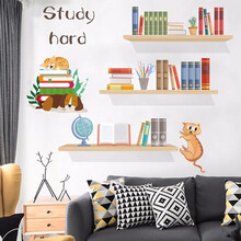 【新品】欧仕图 ins墙贴自粘 可爱猫咪书架贴画书房卧室学生宿舍装饰贴休息区文艺墙纸防水可移除 可爱猫咪书架