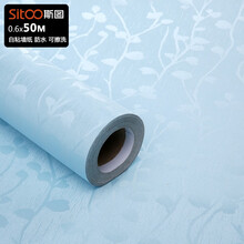 斯图sitoo加厚防水PVC自粘墙纸墙贴卧室客厅宿舍寝室背景墙贴纸贴画3D彩装膜9956-4蓝底小花 60cm*50米