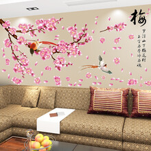 梵饰 花卉贴纸温馨墙贴创意房间装饰贴画墙纸自粘防水墙上贴花墙壁中国风纸壁墙贴纸墙面卧室客厅电视背景墙 A.梅林鸟款