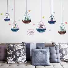 欧仕图 ins墙贴自粘 个性多肉吊篮墙壁装饰贴画创意客厅卧室走廊玄关布置贴纸玻璃门玻璃diy墙纸 藏在玻璃瓶的多肉