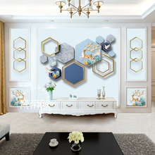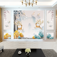 梵帝欧 电视背景墙壁纸5D立体客厅装饰壁画3D现代简约墙布墙纸北欧几何抽象麋鹿8D五宫格组合影视墙 几何麋鹿A组合 3D无缝丝绸布/平方米